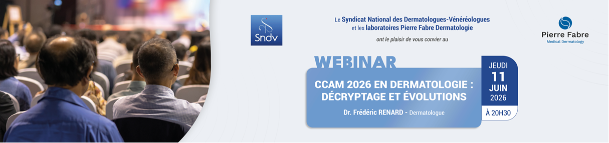 Ce webinaire en ligne est organisé par le Syndicat National des Dermatologues-Vénérologues. Il se tiendra le mardi 27 janvier 2026, de 20h30 à 21h30, et sera animé par le Dr Nathalie Quiles et le Dr Rima Mohty. Au programme : Les places sont limitées, n’attendez pas pour vous inscrire en remplissant le formulaire ci-dessous :